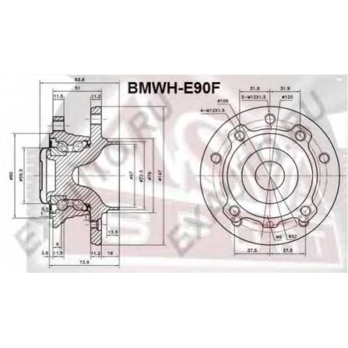 Ступица передняя (10216022/040213/0002146/8, китай) [12] ASVA BMWHE90F