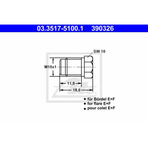 Резьбовая пробка, главный тормозной цилиндр ATE 390326 / 03.3517-5100.1