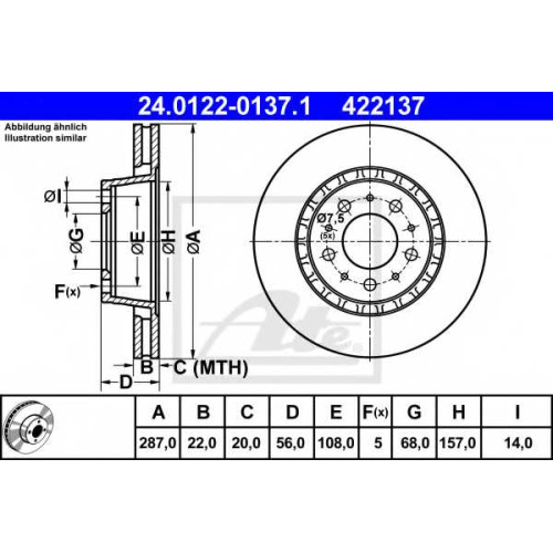 Тормозной диск ATE 422137 / 24.0122-0137.1