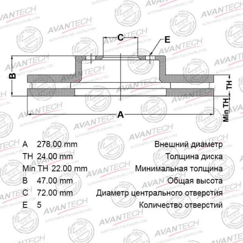 Диск тормозной передний AVANTECH BR0402