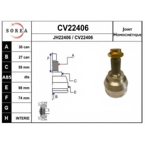 Шарнирный комплект приводного вала EAI CV22406K