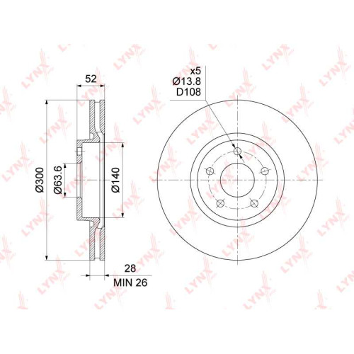 Диск тормозной передний (300x28) LYNXAUTO BN-1461