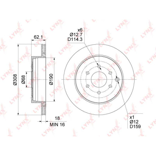 Диск тормозной задний (308x18) LYNXAUTO BN-1813