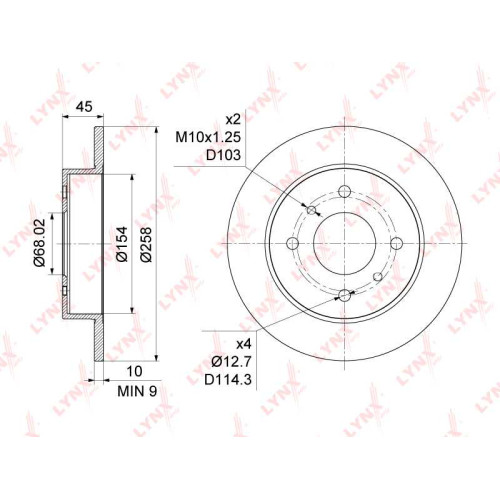 Диск тормозной задний (258x10) подходит для NISSAN Almera(N16) 1.5-2.2D 00> / Primera(P10/1) 1.6-2.0D 90-01 LYNXAUTO BN-1100