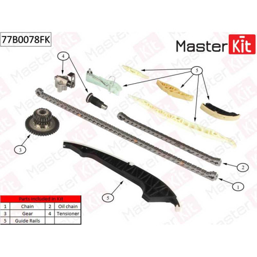 Комплект цепи грм AUDI 1.8TFSI CABA/CDHA 07-12 MASTERKIT 77B0078FK