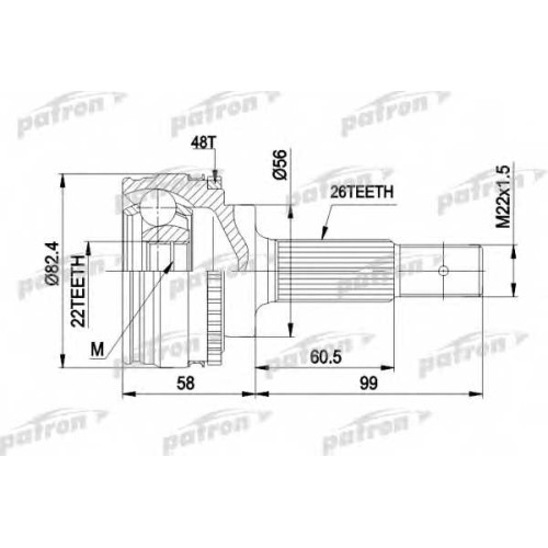 Шарнирный комплект приводного вала PATRON PCV1484