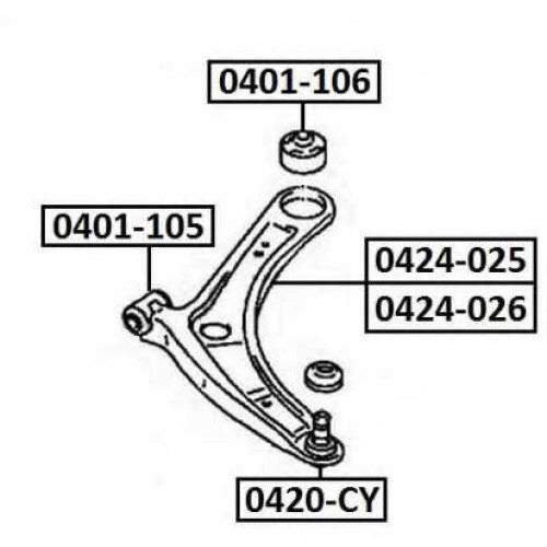 Сайлентблок, рычаг независимой подвески колеса ASVA 0401106