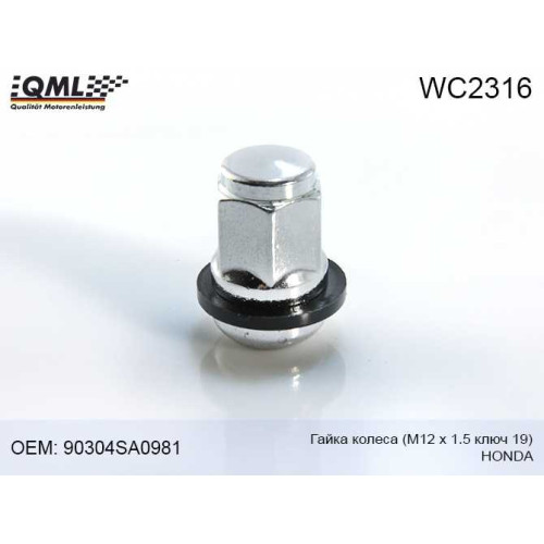 Гайка колеса м12 х 1.5 ключ 19 honda (для штамп.диска) QML WC2316