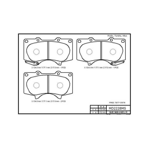 Колодка тормозная дисковая передняя TOYOTA LAND сRUISER 01/03- (в комл. противошумная пластина, смазка, датчик износа) RIXOS MD2228MS