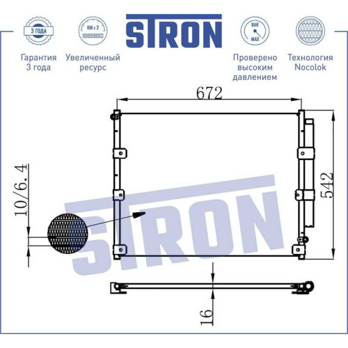 Радиатор кондиционера (гарантия 3 года, увеличенный ресурс) STRON STC0016