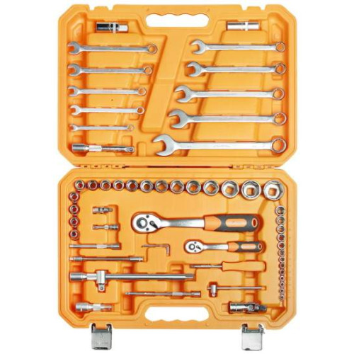1 / 4 дюйма Головка торцевая 6гр. 4, 4.5, 5, 5.5, 6, 7, 8, 9, 10, 11, 12, 13, 14 Трещоточная рукоятка 1 / 4 дюйма, 72 зуба Вороток Т-образный 1 / 4 дюйма Отверточная рукоятка 1 / 4 дюйма - 1 / 4 дюйма Удлинитель 50мм, 100мм, 150мм Карданный шарнир 1 / 4 дюйма Удлинитель гибкий 145мм Г-образный шестигранный ключ 1.5мм, 2мм, 2.5мм 1 / 2 дюйма Головка торцевая 6гр. 8, 10, 11, 12, 13, 14, 15, 16, 17, 18, 19, 21, 22, 24, 27, 30, 32 Головка свечная 16мм, 21мм Трещеточная рукоятка 1 / 2 дюйма, 72 зуба Удлинитель 75мм, 125мм, 250мм Адаптор для Т-образного воротка 1 / 2 дюйма Карданный шарнир 1 / 4 дюйма Ключ комбинированный 8, 10, 11, 12, 13, 14, 15, 17, 19, 22мм