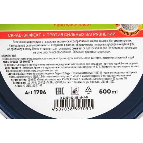 Очиститель-паста для рук LAVR LN1704 (500г)