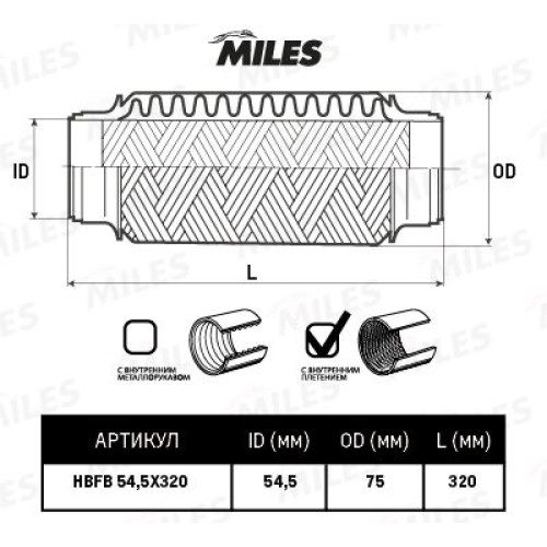 Гофра глушителя (виброкомпенсатор) 54.5X320мм InnerBraid MILES HBFB54.5X320