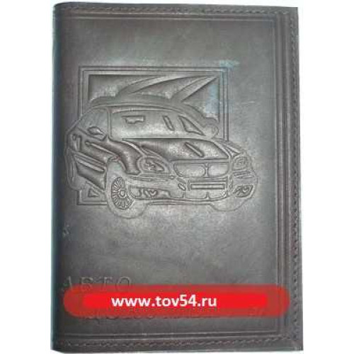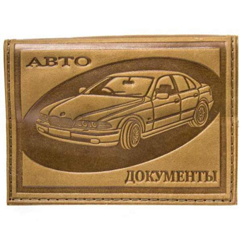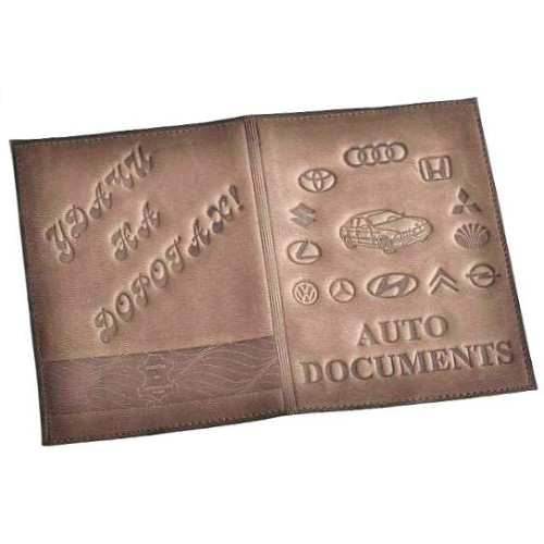 Бумажник водителя кожаный светлый с рельефным рисунком "Логотипы авто