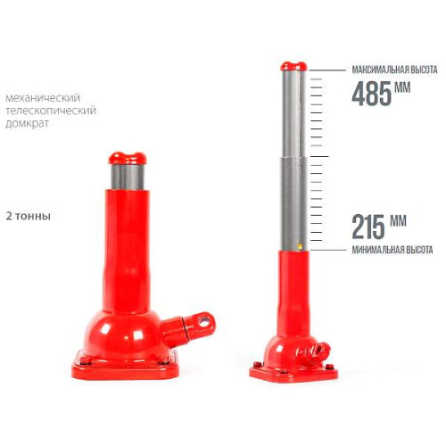 Домкрат винтовой 2т телескопический KS-40R, высота 215-485мм