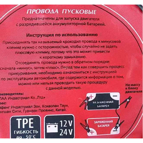 Провода пусковые 400А KS, до -45С, длина 2,5м, в морозоустойчивой сумке