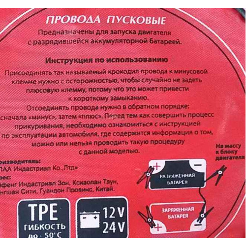Провода пусковые 600А KS, до -45С, длина 3м, в морозоустойчивой сумке
