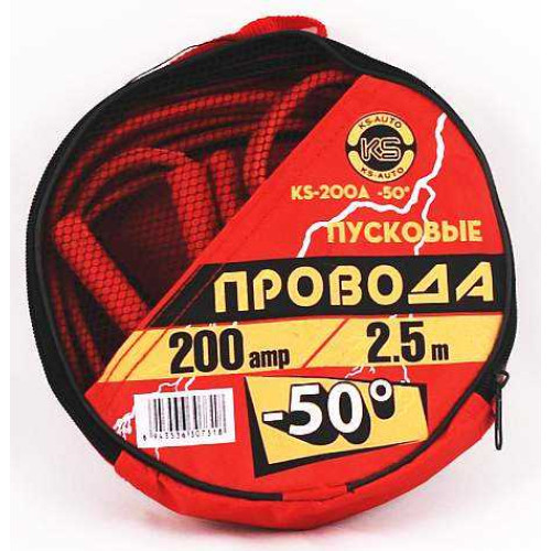 Провода пусковые 200А KS, до -45С, длина 2,5м, в морозоустойчивой сумке