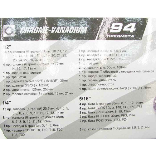 Набор инструментов 1/2" ЭВРИКА ER-TK4094 (6 гран., 94 предм.)