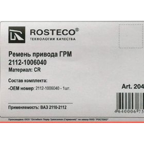 Ремень ГРМ ВАЗ 2110-2112 (16кл) ROSTECO 20410