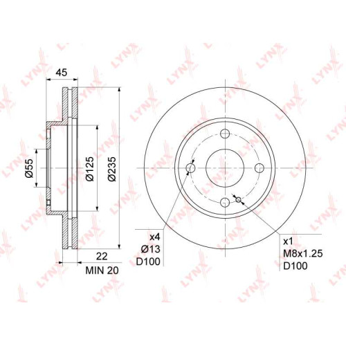 Диск тормозной передний (235x22) MAZDA Demio(DW) 1.3-1.5 98-03 / 323 IV-VI 1.6-1.8 90-04 LYNX