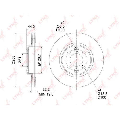 Диск тормозной передний (258x22) LYNXAUTO BN-1419