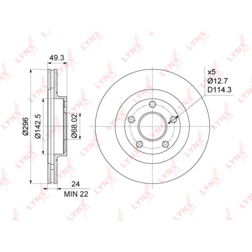 Диск тормозной передний (296x24) подходит для NISSAN Teana(J31) 2.0-3.5 03-08 LYNXAUTO BN-1103