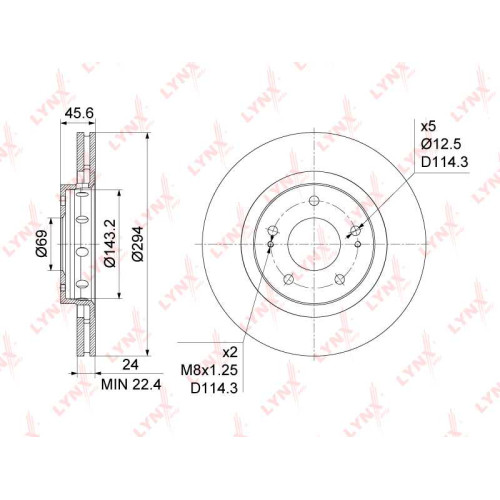 Диск тормозной передний (294x24) MITSUBISHI Outlander I-III 2.0-3.0 02>, CITROEN C-Crosser(EP) 2.0-2.4 07>, PEUGEOT 4007 2.0-2.4 07> LYNXAUTO BN-1093